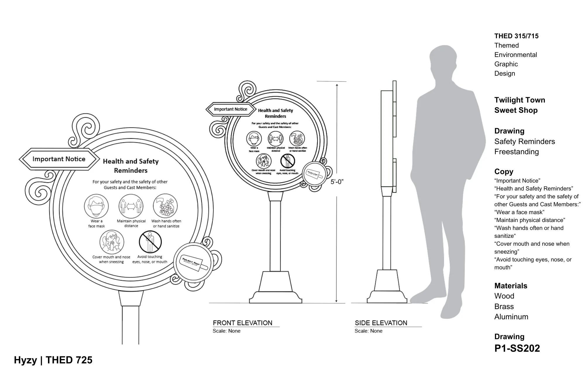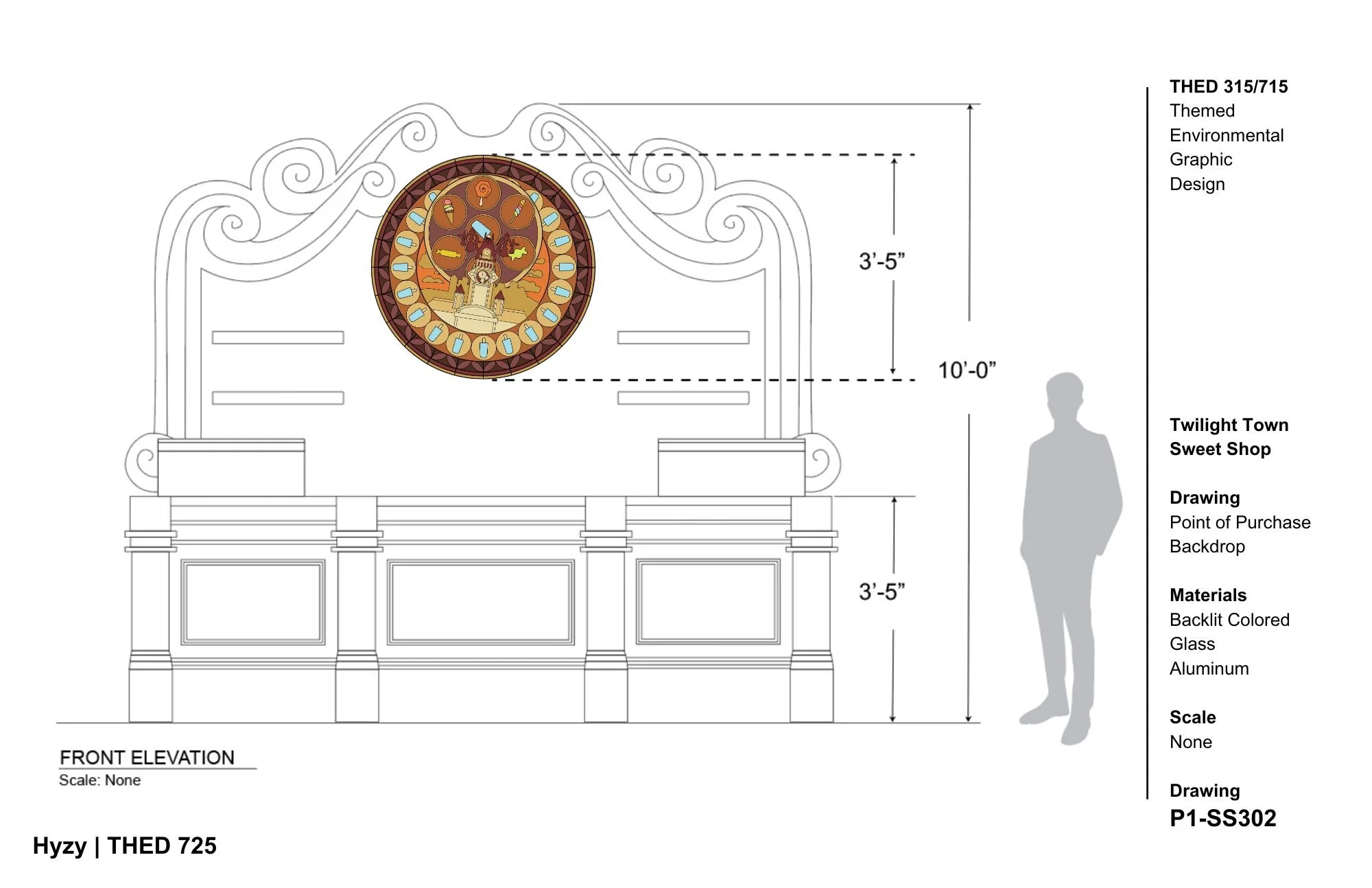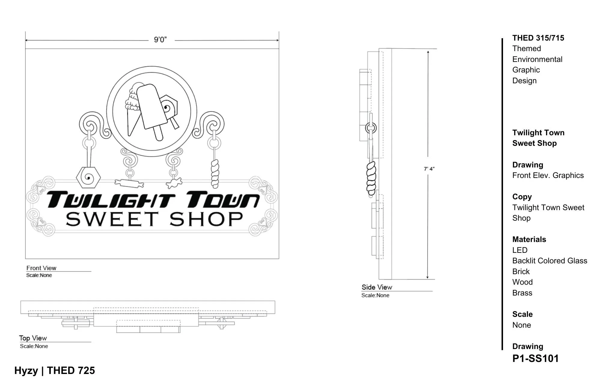 In THED 725: Themed Entertainment Environmental Graphics & Specifications, we were given schematics from Bing Bong’s Sweet Stuff, a gift shop in California Adventure, and asked to re-theme its exterior and interior graphics to an IP of our choosing (without regard to the original shop’s surrounding Pixar Pier theming).