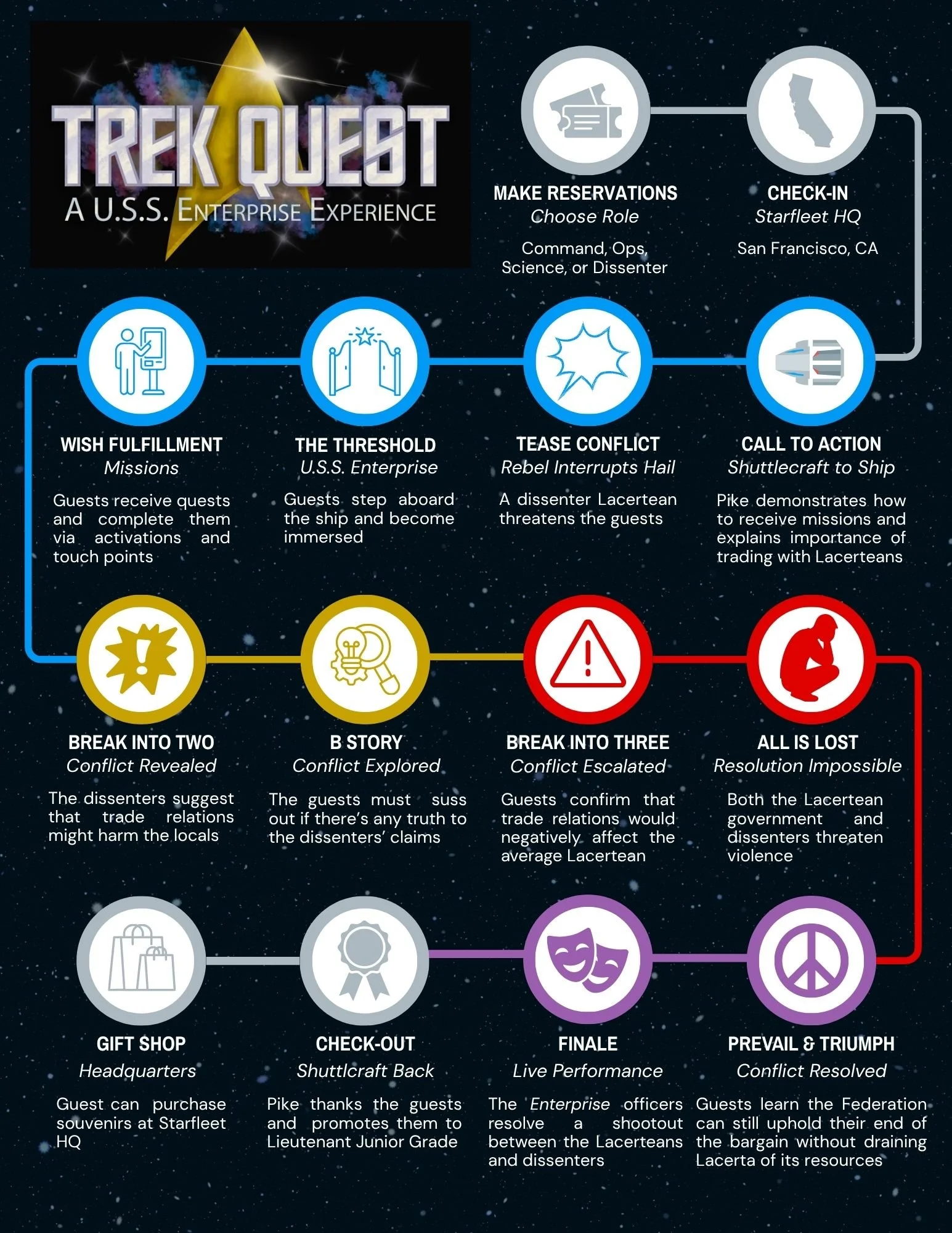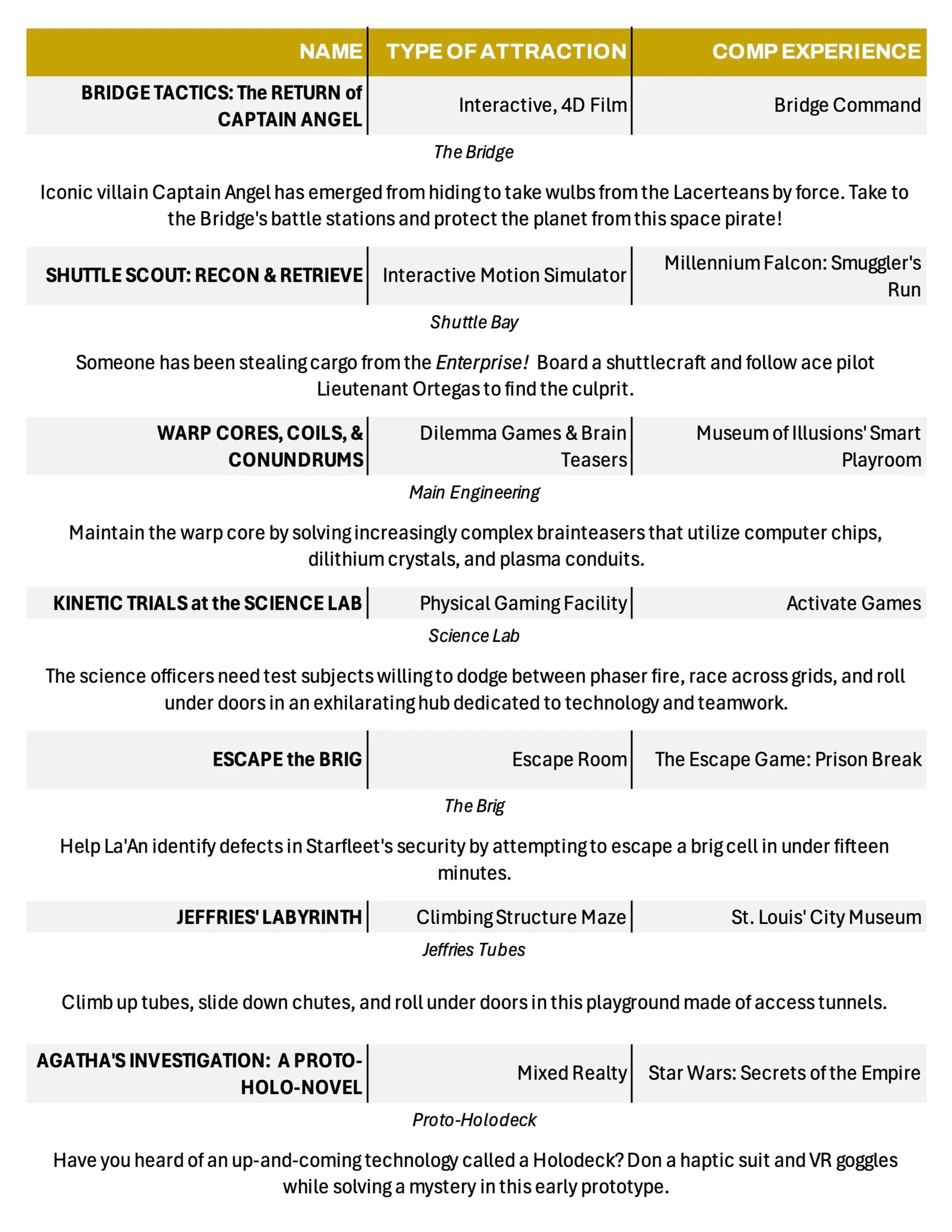 When guests step aboard this U.S.S. Enterprise-themed resort, they can boldly go on space-set rides and attractions, relax during shore leave on a tropical planet, or play a resort-wide, “alien of the week”-type game that culminates, as all the best Trek episodes do, in an ethical conundrum.