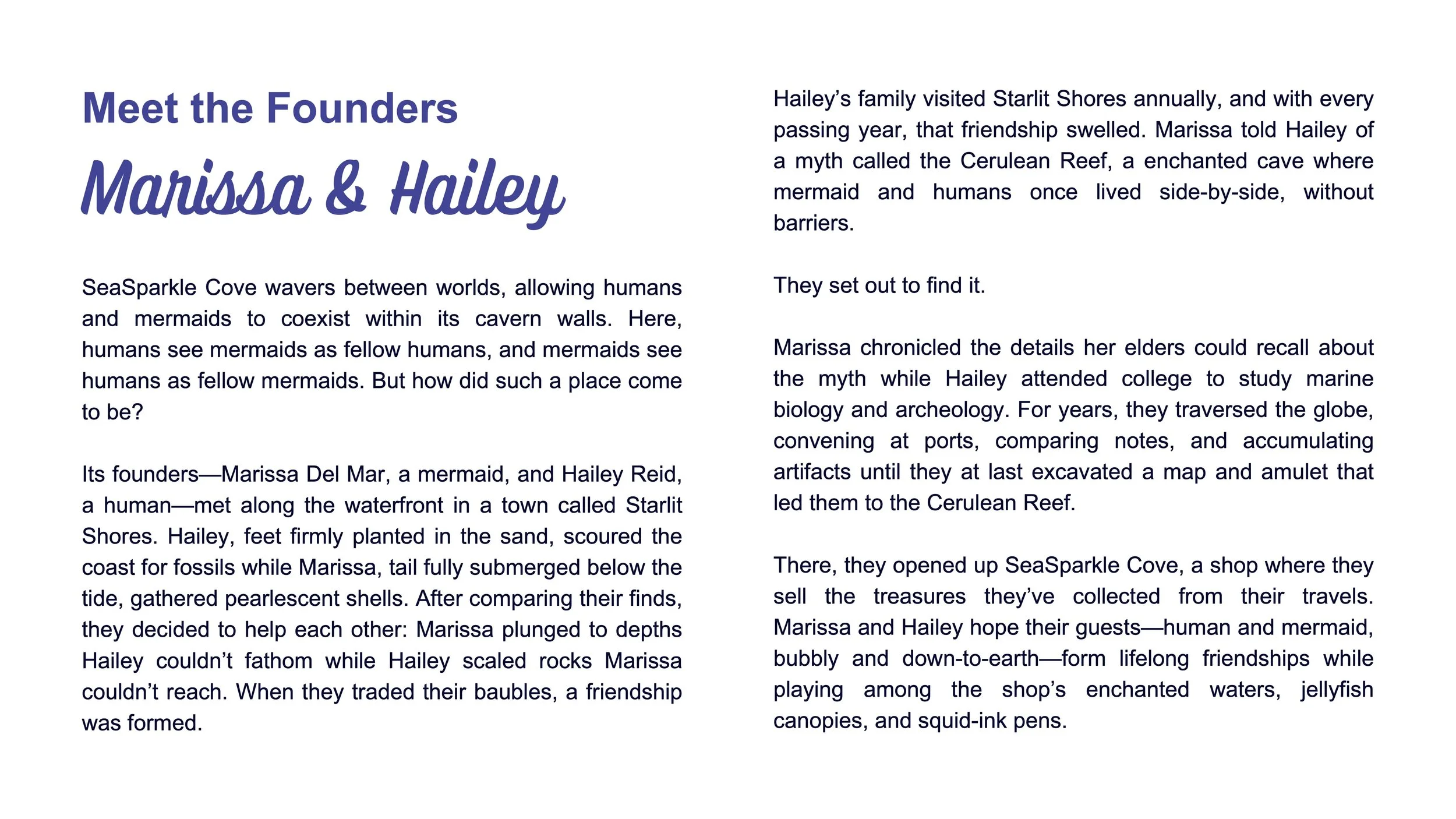 Humans and mermaids alike are welcome to dive into SeaSparkle Cove, a shop brimming with bioluminescent lamps, shimmery stationary, and aquatic trinkets.